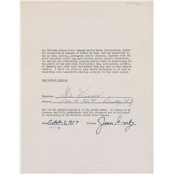 DS, one page, 8.5 x 11, October 2, 1957. Hodges agrees to allow the Gillette Safety Razor Company to use his “name, address, photograph and/or likenes