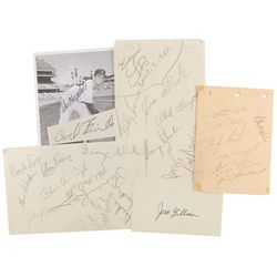 Collection of five items: glossy 5 x 7 photo of Don Drysdale, signed in black felt tip; vintage pencil signature of Carl Furillo on an off-white slip;