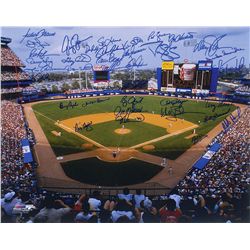 Color satin-finish 20 x 16 photo of a Mets game at Shea Stadium, signed in blue felt tip by 37 former players including: Duke Snider, Gary Carter, Dar
