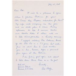 All-Star center fielder for the New York Yankees (1908–1969). ALS, one page, 7.25 x 10.5, July 25, 1968. Letter to a member of the Yankees staff. In p