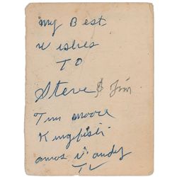 Celebrated African-American vaudevillian and comic actor (1887–1958). Rare 2.25 x 3.25 cardstock photo of Moore wearing his trademark attire, signed o