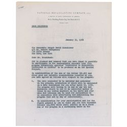 DS, three pages, 8.5 x 11, January 31, 1962. Agreement between Eisenhower and NBC for the former president to narrate a half-hour program entitled “Pr