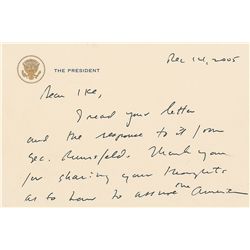 Rare ALS as president, one page both sides, 6.25 x 4.25, presidential letterhead, December 14, 2005. Letter to Congressman Ike Skelton, who was the ra