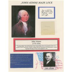 Three short strands of Adams’s hair, encapsulated in clear plastic, and affixed to an 8.5 x 11 informational sheet, which bears a copy of the original