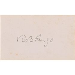 Ink signature, “R. B. Hayes,” on an off-white 3.75 x 2.25 card. In fine condition, with a bit of scattered light foxing and toning, and mounting remna
