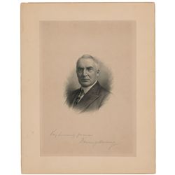 Scarce 11 x 14 engraved portrait of President Harding, signed below the vignette in pencil, “Very sincerely yours, Warren G. Harding.” A few small edg