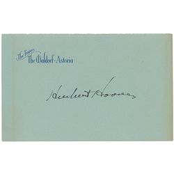 Ink signature, “Herbert Hoover,” on a light blue 5.25 x 3.25 sheet of Waldorf-Astoria stationery. In fine condition, with a uniform shade of light ton