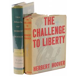 Two hardcover books, The Challenge to Liberty and The Memoirs of Herbert Hoover, each signed and inscribed on the first free end page by Hoover. In fi