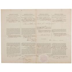 Partly-printed DS as president, one page, 21.25 x 16.5, August 26, 1861. Four-language ship’s papers issued to “Alfred C. Davis, master and commander