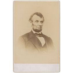 Clean 4.25 x 6.5 period cabinet portrait of Abraham Lincoln in a formal bust-length pose. Reverse is blank except for a contemporary identification no