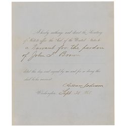 Partly-printed DS as president, one page, 8 x 9.5, September 30, 1868. President Johnson directs the secretary of state “to affix the Seal of the Unit