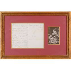 Large ink signature, “R. E. Lee,” on an off-white slip. Cloth-matted and framed with a color portrait of Lee and a small name plaque to an overall siz