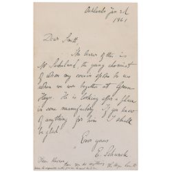 LS signed “Winf’d S. Hancock,” two pages on two adjoining sheets, 5.5 x 8.5, December 23, 1881. Letter to Henry Miller Allen declining an invitation.