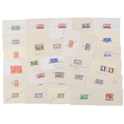 Collection of 40 off-white 5 x 3 cards featuring various affixed stamps, each signed by a notable figure, including many world leaders. Signers are: P