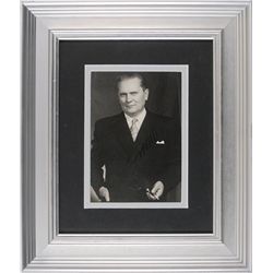Longtime leader of Yugoslavia (born 1892) from 1945 until his death in 1980. Matte-finish 4.5 x 6.5 half-length portrait of Tito holding a cigarette,