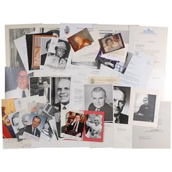 Collection of 20 items, primarily consisting of signed photos, letters, and signatures, each signed by a significant world leader. Signers are: Emilio
