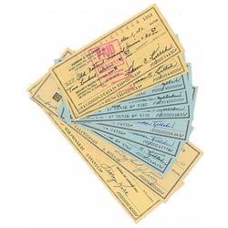 Collection of nine checks, each signed by a different former Major Leaguer. Signers are: Harry Hooper, Jesse Haines, Walter Leonard, Eppa Rixey, Harol