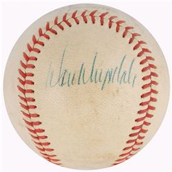 Official Rawlings American League (MacPhail) baseball signed in blue ballpoint on the sweet spot. In very good condition, with scattered toning, some