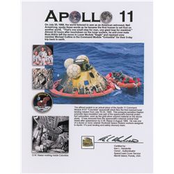 Color satin-finish 8 x 10 photo of Collins in his white space suit against a lunar background, signed in blue felt tip. In very fine condition.