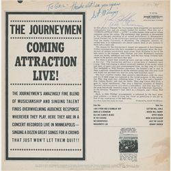 Three albums, each signed on the back cover by the folk musicians featured, including: The Kingston Trio (John Stewart, Nick Reynolds, and Bob Shane);