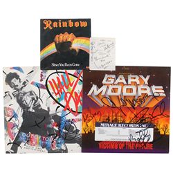 Collection of eight items signed by British bands and musicians, including: a glossy publicity photo of The Notting Hillbillies, signed in black felt