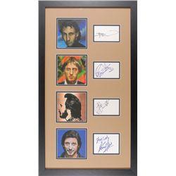 Four items, each signed by a different rock and roll band, including: signatures of Tourists members Lennox, Stewart, Coombes, and Chin on a 1980 date