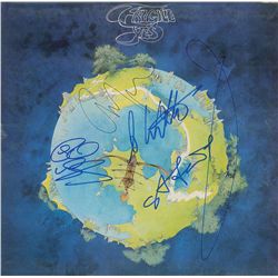 Fragile album signed on the front cover in blue and black felt tip by Jon Anderson, Rick Wakeman, Chris Squire, Steve Howe, and Alan White. In fine co