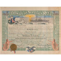 Colorful partly-printed DS, one page, 28 x 17, November 27, 1925. A rare Shellback certificate issued to William Lavoie, in part: “To all sailors wher