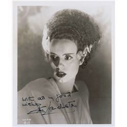 Iconic glossy 8 x 10 photo of Lanchester in The Bride of Frankenstein, signed in black felt tip, “With all my good wishes, Elsa Lanchester.” In fine c
