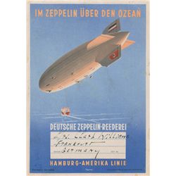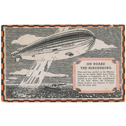 Original postcard carried onboard the Hindenburg's maiden voyage from Friedrichshafen, Germany to Lakehurst, New Jersey, and addressed to “Mr. J...