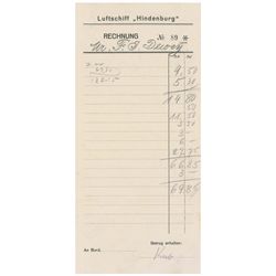 An on board Hindenburg bill, 4.5 x 9.5, completed in pencil for a total purchase of $69.85. Three horizontal folds, and some scattered light creasing