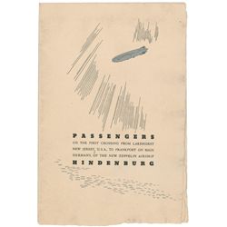 Scarce maiden voyage passenger list from the Hindenburg’s first eastward crossing from Lakehurst, New Jersey to Frankfurt on Main, Germany, on May 11,