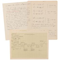 Member of Wernher von Braun’s rocket team (1915–1996). Three pages of handwritten notes and schematics by Hosenthien: a detailed schematic, in pencil,