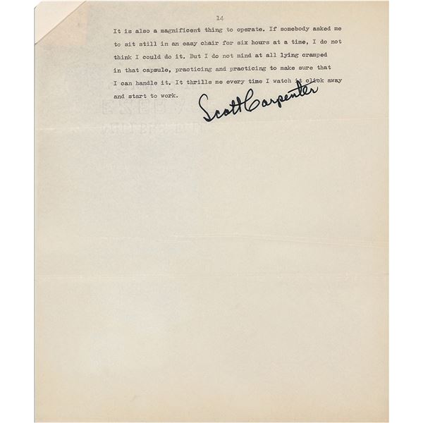 Scott Carpenter Signed Souvenir Typescript7038 - Scott Carpenter Signed Souvenir Typescript