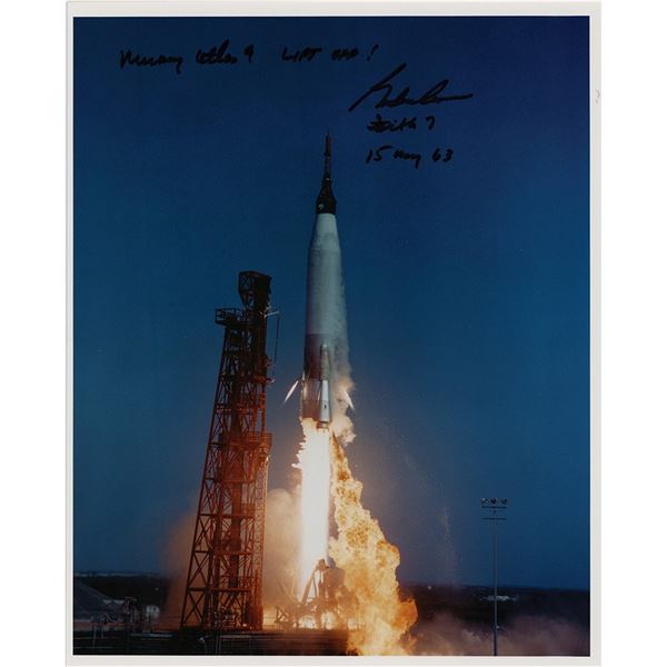 Color satin-finish 8 x 10 photo of the historic launch of the final crewed space mission of the U.S. Mercury program, signed in black felt tip, &quo...