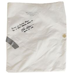 Desirable flown 2.5 x 1 swatch of fabric carried to the moon during the Apollo 14 mission, designated with black stenciling, “CDR,” and affixed to a s