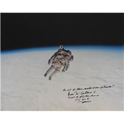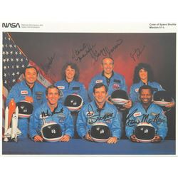 Official color 9.75 x 7.75 NASA lithograph of the crew of STS-51-L posing in their blue flight suits, signed in black felt tip by all seven astronauts