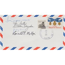 Postal cover postmarked Kennedy Space Center, January 28, 1986, the launch date of STS-51-L, signed in blue ballpoint, “Dick Scobee, 19 Mar 85” and “J