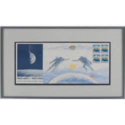 Rare flown pair of stamps carried aboard the Shenzou–1 spaceship, each 1 x 1.25, numbered 2250/4000, displayed within an attractive 10.5 x 13.25 China