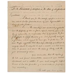 LS as president, one page both sides, 8 x 10, April 12, 1835. Letter to Messrs. Samuel Hart, W. J. Luper, Henry Horn, F. Flower, and T. M. Troutman. I