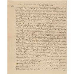 ALS signed “Th: Jefferson,” one page both sides, 7.25 x 9, February 8, 1786. Letter to Governor James Bowdoin of Massachusetts, written from Paris whi