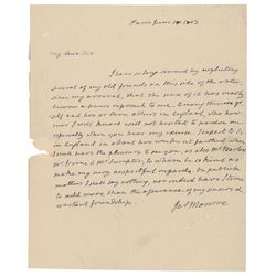 ALS signed “Jas. Monroe,” 8 x 10, June 18, 1803. Letter to Nathaniel Cutting, written by Monroe from Paris as the soon-to-be ambassador to Great Brita