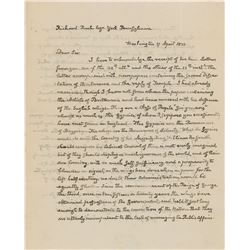 ALS signed “J. Q. Adams,” one page both sides, 8 x 10, April 17, 1831. Letter to his friend Richard Rush, who had served under Adams as Secretary of t