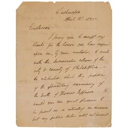 ALS, one page, 8 x 10, February 25, 1836. Letter to "Mr. Sterling," in full: "I have received yours of the 21st in relation to ‘the T...