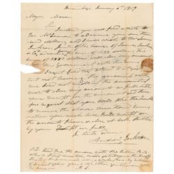 ALS, one page, 7.75 x 9.75, January 6, 1819. Letter to Mayor Milo Mason, Deputy Quartermaster General of the Southern Department in Nashville, Tenness