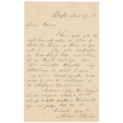 ALS, one page, 5 x 7.75, August 29, 1856. Letter to “Haven.” In full: “I have yours of the 26 and herewith return the letters of Robt. K. Taylor of Te