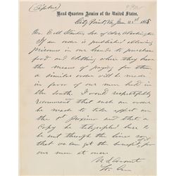 Civil War-dated ALS signed “U. S. Grant, Lt. Gnl.,” one page, lightly-lined, 7.75 x 9.75, Head Quarters Armies of the United States letterhead, Januar
