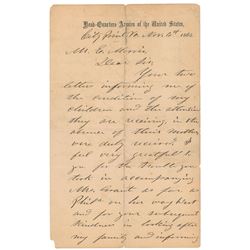 Civil War-dated ALS signed “U. S. Grant,” two pages both sides, 5 x 8, Head-Quarters Armies of the United States letterhead, November 6, 1864. Letter