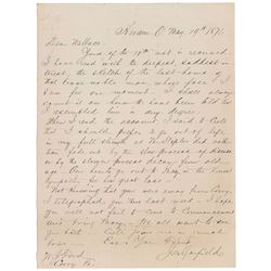 ALS signed “J. A. Garfield,” one page, 7.75 x 10.5, May 19, 1871. Letter to Wallace J. Ford in Corry, Pennsylvania, in part: "I have read with ...