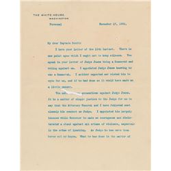TLS as president, two pages on two adjoining sheets, 7 x 9, White House letterhead, November 17, 1905. Letter to Captain Charles H. Scott of Montgomer